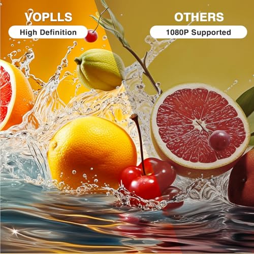 [2024 Upgraded HD Video Projector]: VOPLLS upgraded home projector supports1080P Full HD resolution, adopts advanced LED and uniform illumination technology, which make the edges of the projection brighter and clearer. These ensure the projection image quality presents a real, dynamic, and color-vibrant effect.