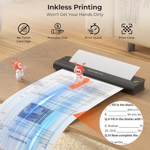 MUNBYN Portable Printers Wireless for Travel ITP02, Portable Printer Bluetooth, Support 8.5″x11″ & A4 Thermal Paper, Compatible with Android, iOS & Laptop, Small Printer for Office, School(Black)