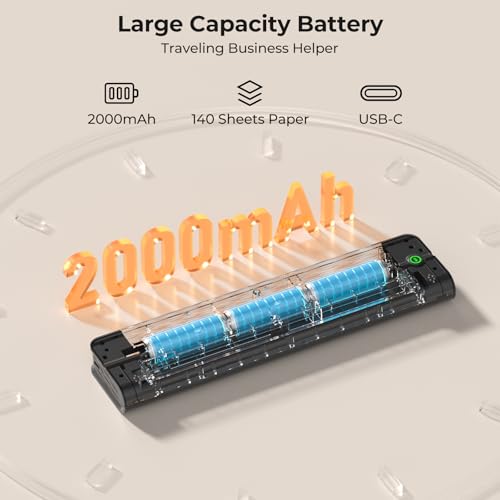 Ultra-Portable: Experience ultimate convenience with MUNBYN portable printer. Comparable in size to a bottle of water, this compact and lightweight printer is perfect for business trips, travel, and outdoor use. The volume of the thermal printer ITP02 is approximately equal to that of two 6.7-inch smartphones, and its built-in 2000mAh battery ensures extended use without the need for frequent recharging. Its small dimensions make printing on the go incredibly easy.