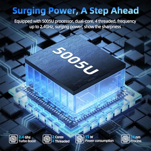 Powerful Intel i3-5005U Processor: This Win 11 laptop is powered by an Intel Core i3-5005U processor with 2.4GHz Turbo Boost, offering dual-core, four-thread performance for seamless multitasking. Easily handle 20+ Chrome tabs, video editing, and demanding workloads with desktop-level efficiency. Ideal for laptop for college students and professionals, it provides the perfect balance of performance and portability for work, study, and entertainment