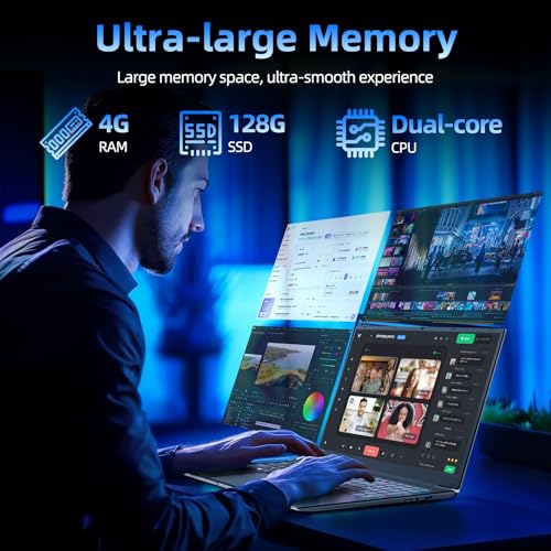 Flexible Storage Options: Equipped with 4GB RAM and 128GB SSD, Naclud laptop supports expansion up to 1TB SSD, ensuring ample storage and lightning-fast performance. An additional SSD slot allows for easy upgrades. As a laptop for work, it guarantees a smooth workflow, keeping your creativity and productivity on track