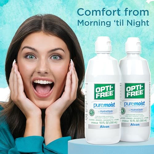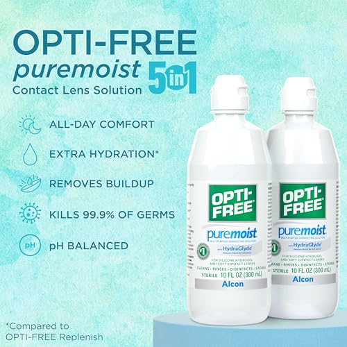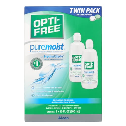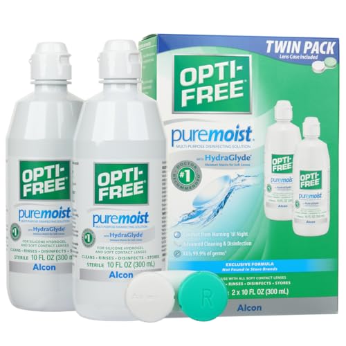 Opti-Free Puremoist Multi-Purpose Contact Lens Cleaning and Disinfecting Solution with Lens Case, 20 Fl Oz (pack of 2- 10oz bottles)