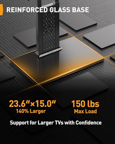 【Swivel TV Stand for 30°-Expanded Base for Maximum Stability】This universal swivel TV stand allows you to swivel your screen 15° left or right to direct the screen anywhere in the room. Built for larger screens, this TV stand swivel features a 23.6″ x 15.0″ glass base—140% larger than standard stands. The expanded footprint enhances stability, reducing wobbling and ensuring secure support for TVs up to 150 lbs. Combined with a reinforced dual-column structure, this universal TV stand Base delivers both strength and style for your home entertainment setup.