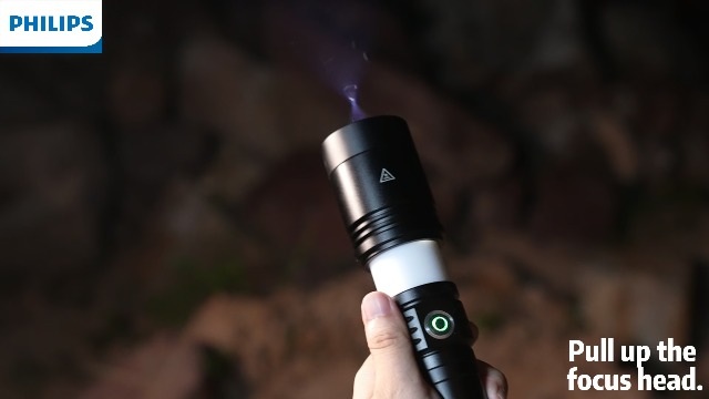 【Camping Flash Light with 2 Colors and 3 Brightness】Philips tactical flashlight features two light types: Flashlight and Ambient light. Zoom out the flashlight and double-click the switch to activate the ambient light. A long press lets you switch between natural white and warm white, while a single click changes the brightness: Medium, High, or Breathing light