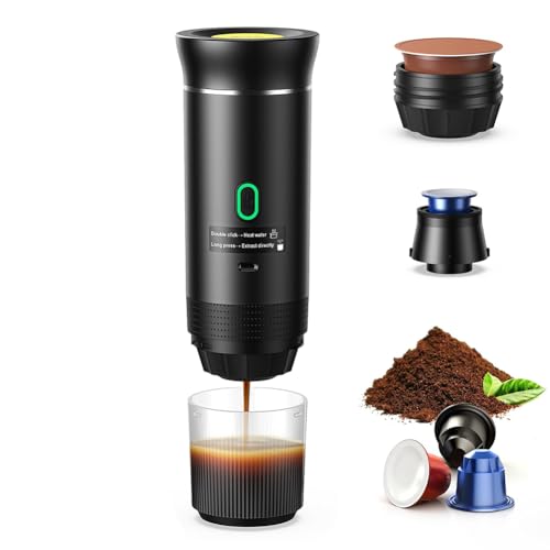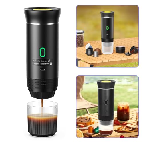 Portable Coffee Machine, 15 Bar Mini Electric Maker Self Heating Hand Make Convenient and Versatile Usb C Car Charger Compatible with Ground Ns Capsule for Camping Hiking Office