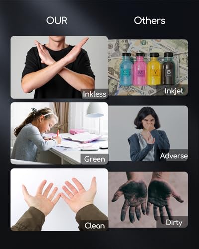 Mobile Printer [High Quality Printing]: The compact printer equipped with 300 DPI clear printing, designed for people who work outside. A wireless inkless portable printer good for mobile notaries, truck drivers, business travelers, office workers, teachers and students. Note: Only support black and white printing