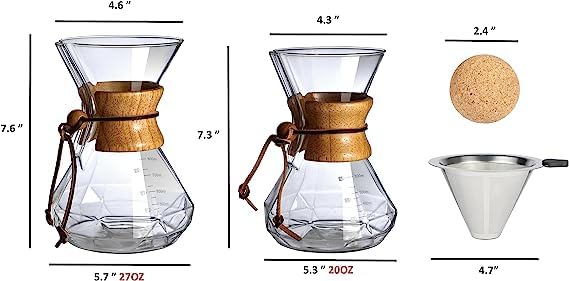 【Best Gift】: This beautiful and transparent glass pour over coffee maker is the best gift for your family,friends,lovers and coffee lovers.