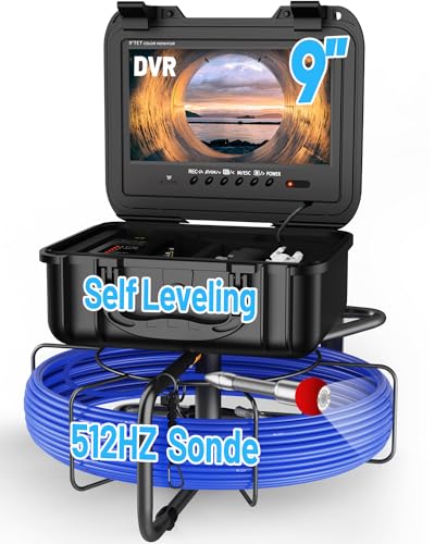 PRANITE 9” Sewer Camera With 512hz Locator, 100FT Self-Leveling Drain Inspection System, DVR Recorder, Photo Capture, IP68 Waterproof Endoscope (16GB SD Card)