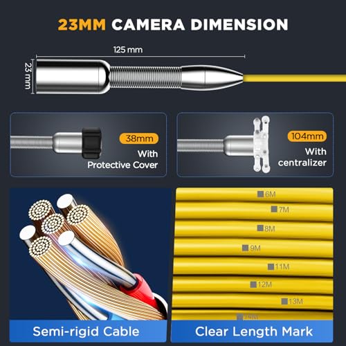 IP68 Waterproof: The 23mm IP68 waterproof camera comes with 12 adjustable LED lights and a wide 140° viewing angle. Enjoy bright, clear visuals even in the darkest environments, revealing every detail within the pipeline