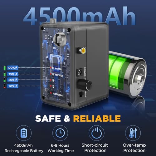 Long-Lasting Battery: Power through your inspections with a 4500mAh rechargeable battery that supports 6-8 hours of continuous use. Quick charging in just 4-5 hours ensures minimal downtime. Customize your lighting with the brightness adjustment knob, and stay informed with the battery indicator light to avoid unexpected power loss.