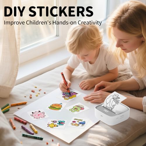 PRT Mini Sticker Printer, Portable Thermal Printer with 1 Roll Sticker Paper, Inkless Sticker Maker, Bluetooth Label Printer for Study Notes,Lists,Pictures,DIY Creations Small Printers for Home Use