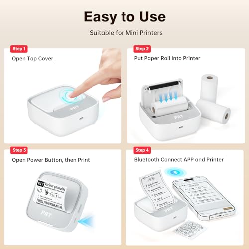 PRT Sticker Printer, Mini Thermal Printer Bluetooth Portable Sticker Maker with 1 Roll Paper, Print Pod, for Study Notes, Pictures, Labels, DIY, Multiple Templates for Phones & Tablets