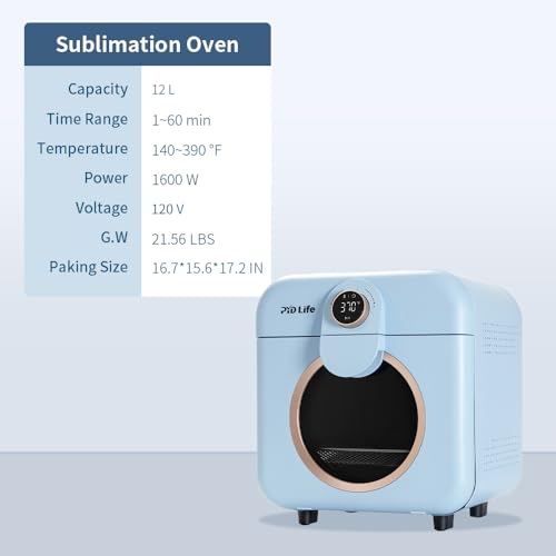 PYD Life Mini Sublimation Oven Machine 12 L 120 V 1600 W Light Blue Heat Press Machine for Sublimation Blanks Mugs Tumblers Cups Water Bottles Sublimation Printing
