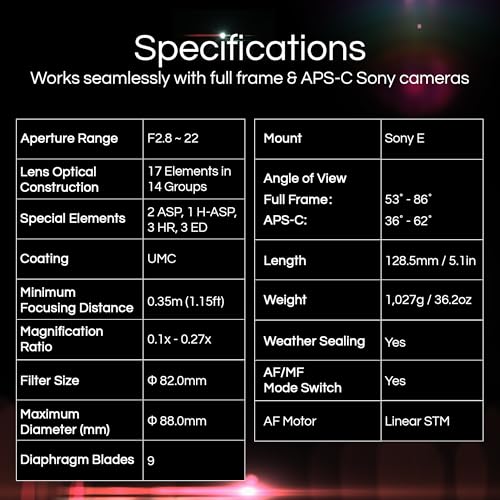 PAR-FOCAL DESIGN FOR VIDEO PRECISION: Maintains exact focus as you zoom, a rare feature in photo lenses. Perfect for videographers seeking cinematic results with smooth transitions and consistent framing accuracy.