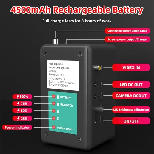 Video Recorder: The Sanyipace drainage scope camera comes with a DVR recorder function to capture images and videos. It includes a 16GB TF card (device support expandable up to 128GB), allowing you to easily store and transfer inspection footage. Powered by a 4500mAh rechargeable battery, it supports up to 10 hours of continuous use, making it perfect for both indoor and outdoor inspections