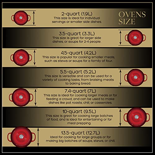 Signature Enameled Cast Iron Dutch Oven, Non-Stick Serving Pot with Tight Fitting Lid for Perfect Roasting, Baking, Sauteing, and Bread Making | 5.5Q (5.2L) – Red