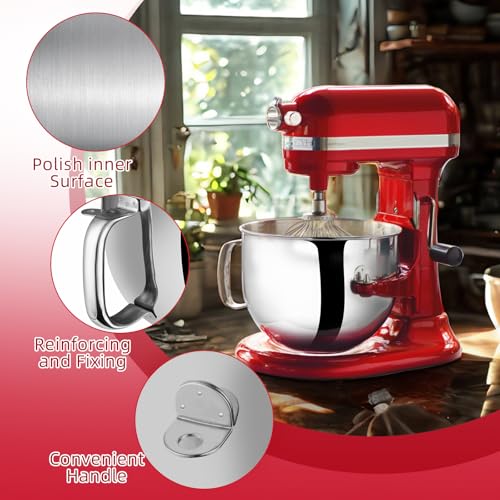 【Premium Stainless Steel Construction】: Crafted from high-quality stainless steel, this food-grade 304 stainless steel bowl for kitchen aid is durable and built to last, providing reliable performance for all your mixing needs, as a kitchen aid accessories and attachments.