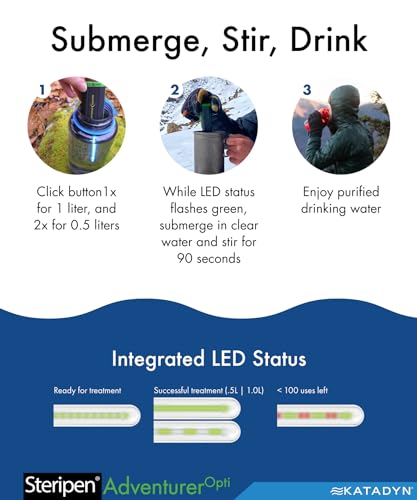 The SteriPEN Adventurer Opti Handheld UV Water Purifier harnesses the power of ultraviolet light to make water secure to drink. This same technology is used by leading bottled water manufacturers in addition to major cities in the USA, Europe, and Asia to purify water.