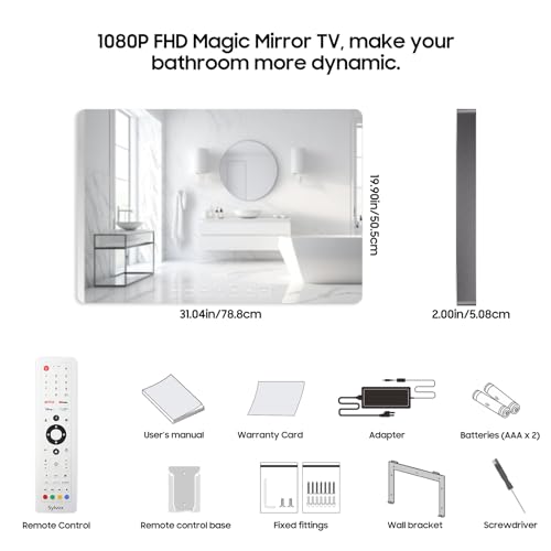 SYLVOX 32” Smart TV Bathroom Magic Mirror Waterproof LED TV 1080P 500NITS High Brightness Dual Front Speakers Wall mounting Suitable for Bathrooms,Hotels,Saunas
