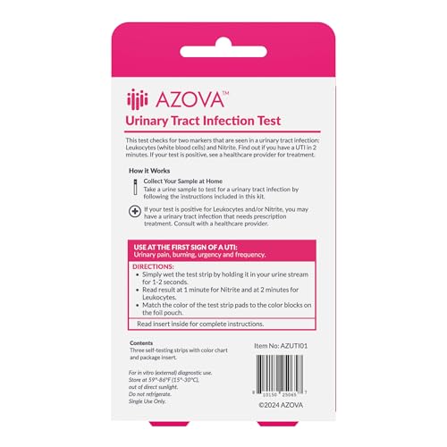 Urinary Health Test Strips | At-Home Wellness Monitoring Kit for Men, Women, and Children | Fast 2-Minute Results | Non-Invasive | 3 Tests | HSA/FSA Eligible by AZOVA