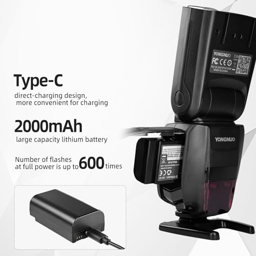 【Lithium Battery System】2000mAh large capacity lithium battery, the number of full power flash is up to 600 times, with built-in overcharge protection, short circuit protection, overheat protection circuit and Type-C direct-charging design, It takes only 1 second recycling time for full power output with fully charged battery.